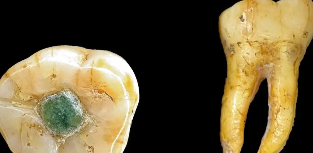 Вчені припускають, що вставка могла виконувати функцію своєрідної пломби. Ймовірно, спочатку було видалено уражені карієсом тканини, після чого порожнину заповнили каменем, закріпивши його природними смолами з антибактеріальними властивостями.